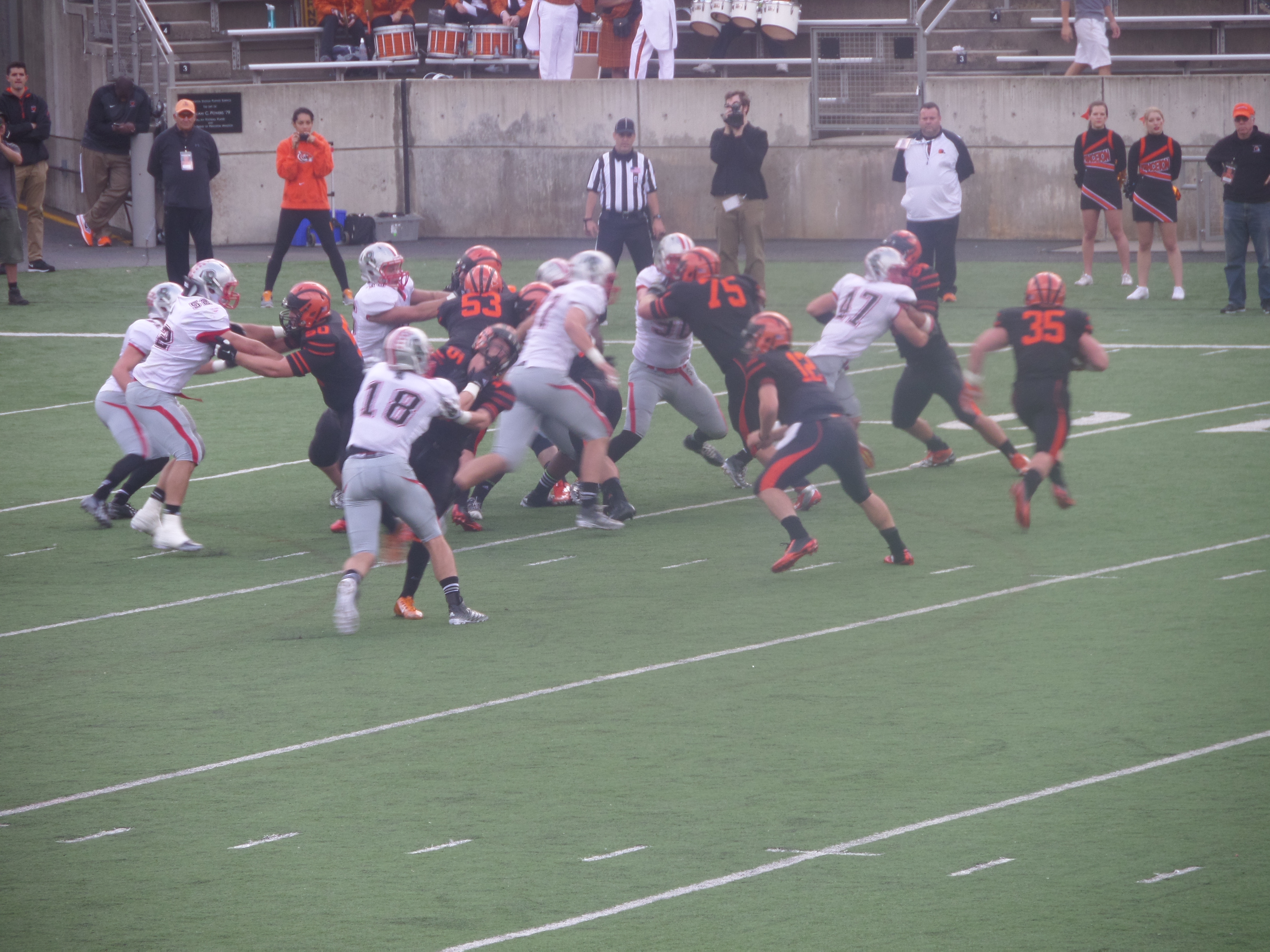 Tiger RB Will Powers sweeps right for a 9-ayrd TD and a 24-0 Princeton lead.