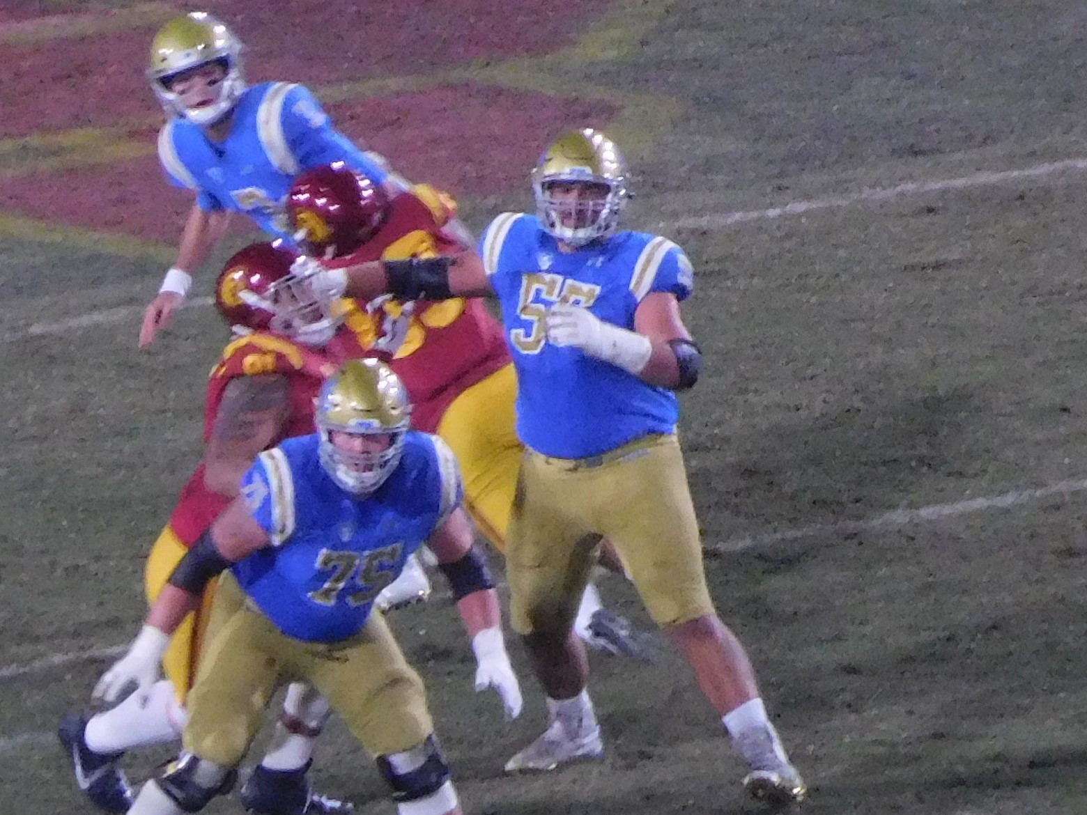 Josh Rosen follows through on a pass against USC in 2017. We think that he will be a disappointing first round pick for somebody.