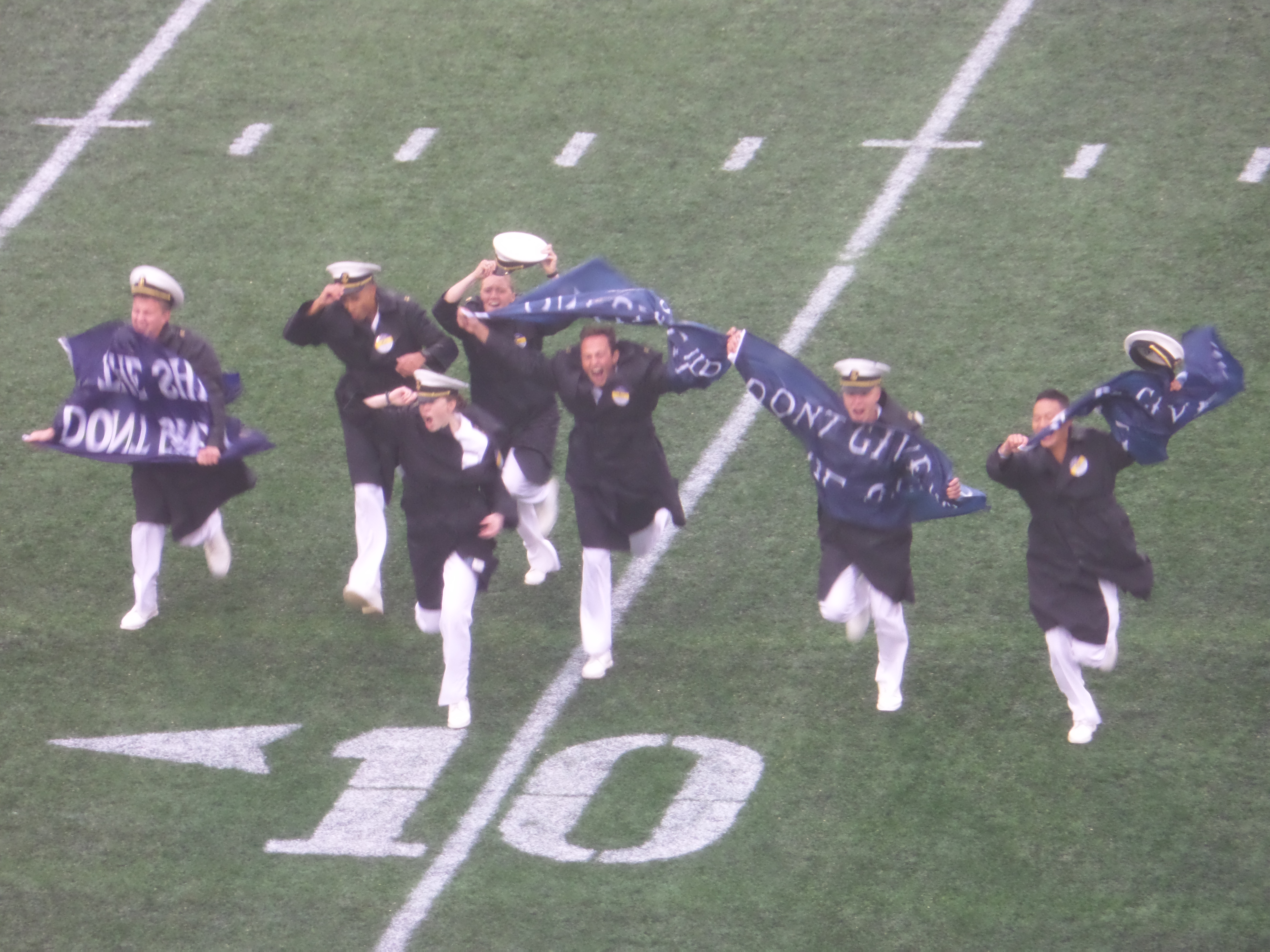 Flyovers were cancelled, but the tradition of Navy and Air Force exchanging “prisoners” (exchange students) was not affected by the weather.