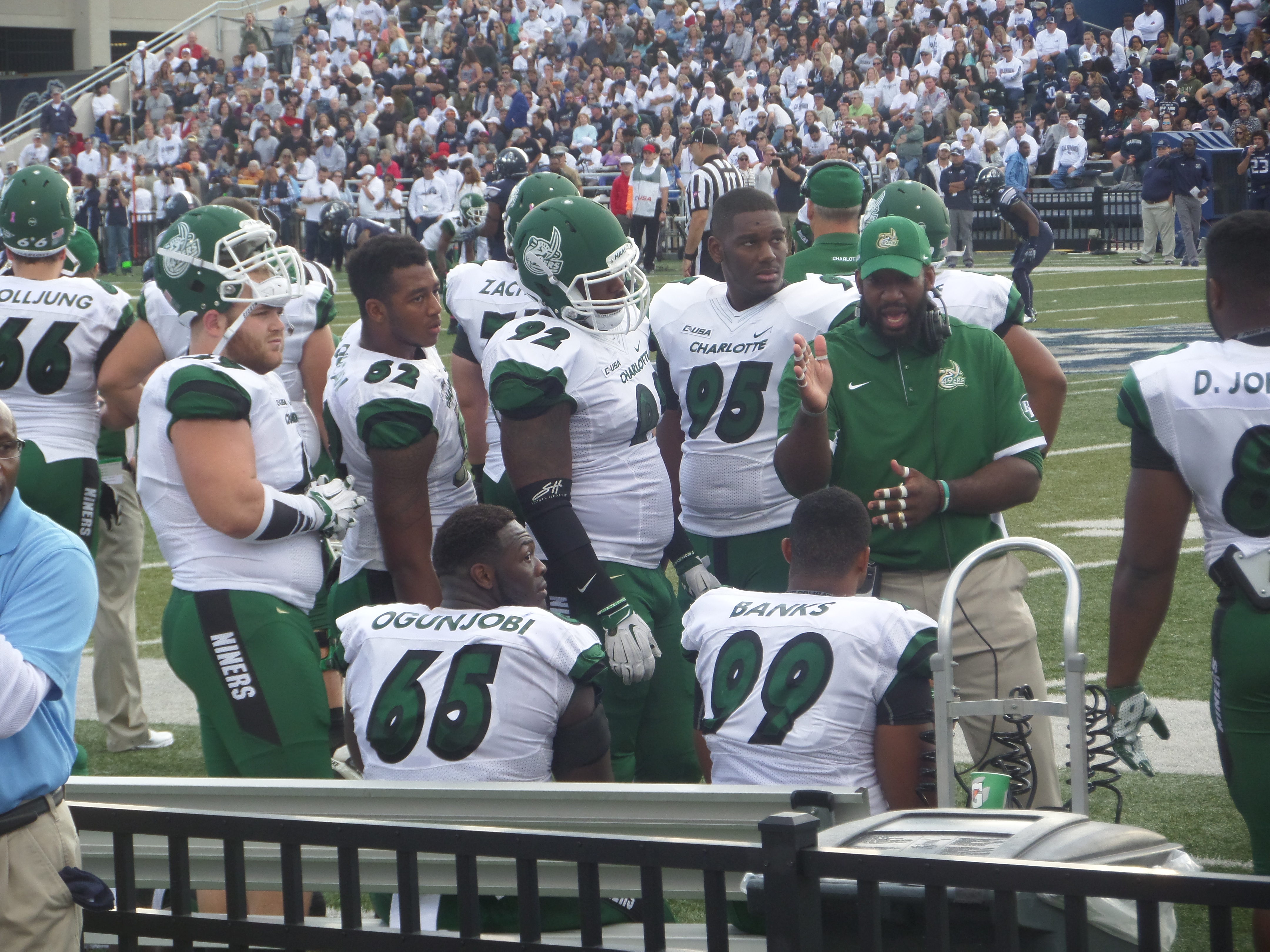 DT Larry Ogunjobi (65) of the Charlotte 49ers dominated ConferenceUSA at 6-2, 305 lbs during his career of 46 starts. Could be another unknown you will see get picked in this week’s draft.