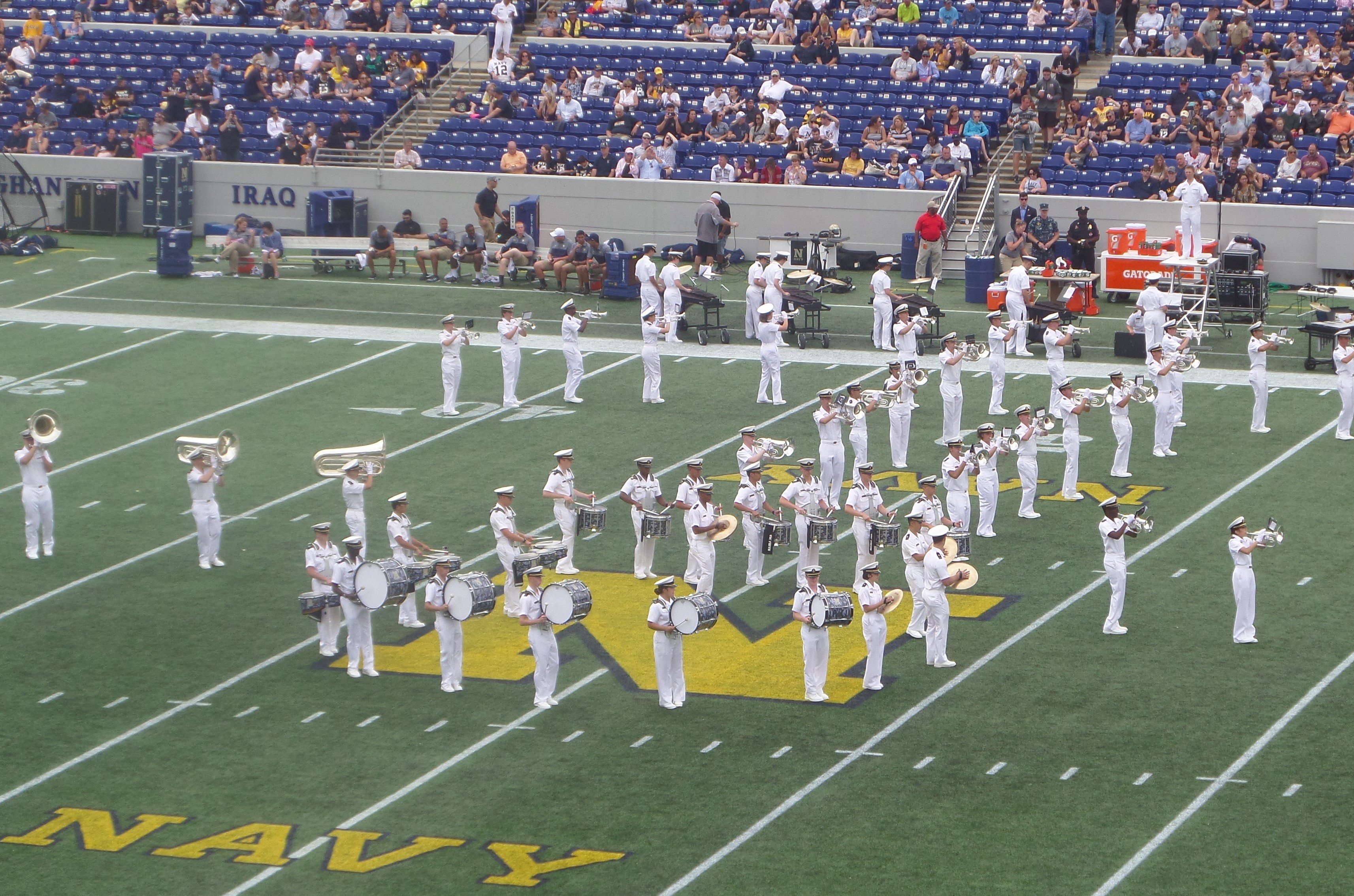 The Naval academy Drum and Bugle Corps performs at halftime.