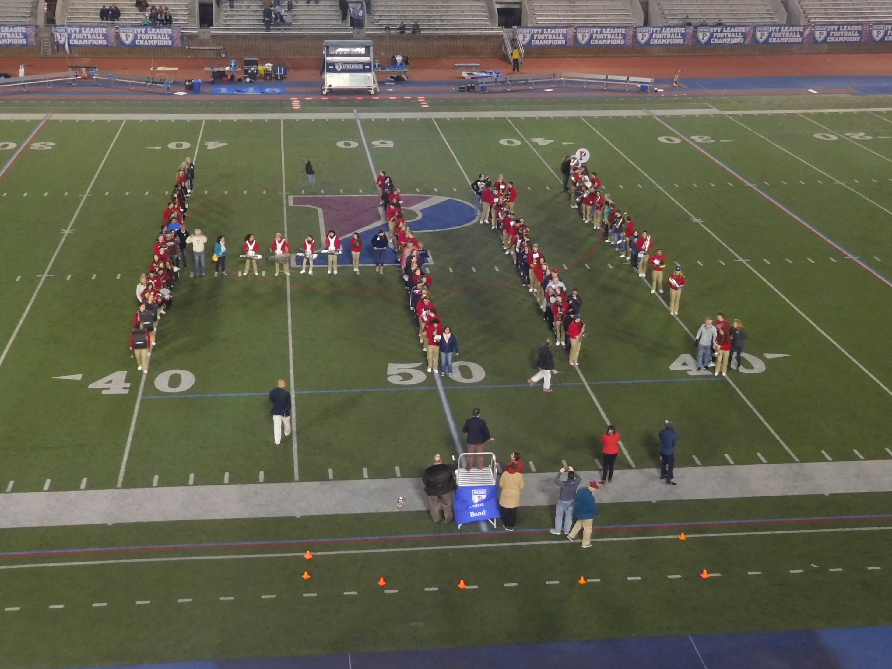 The Penn Band says “Hi!” to everyone watching from the stands and at home.