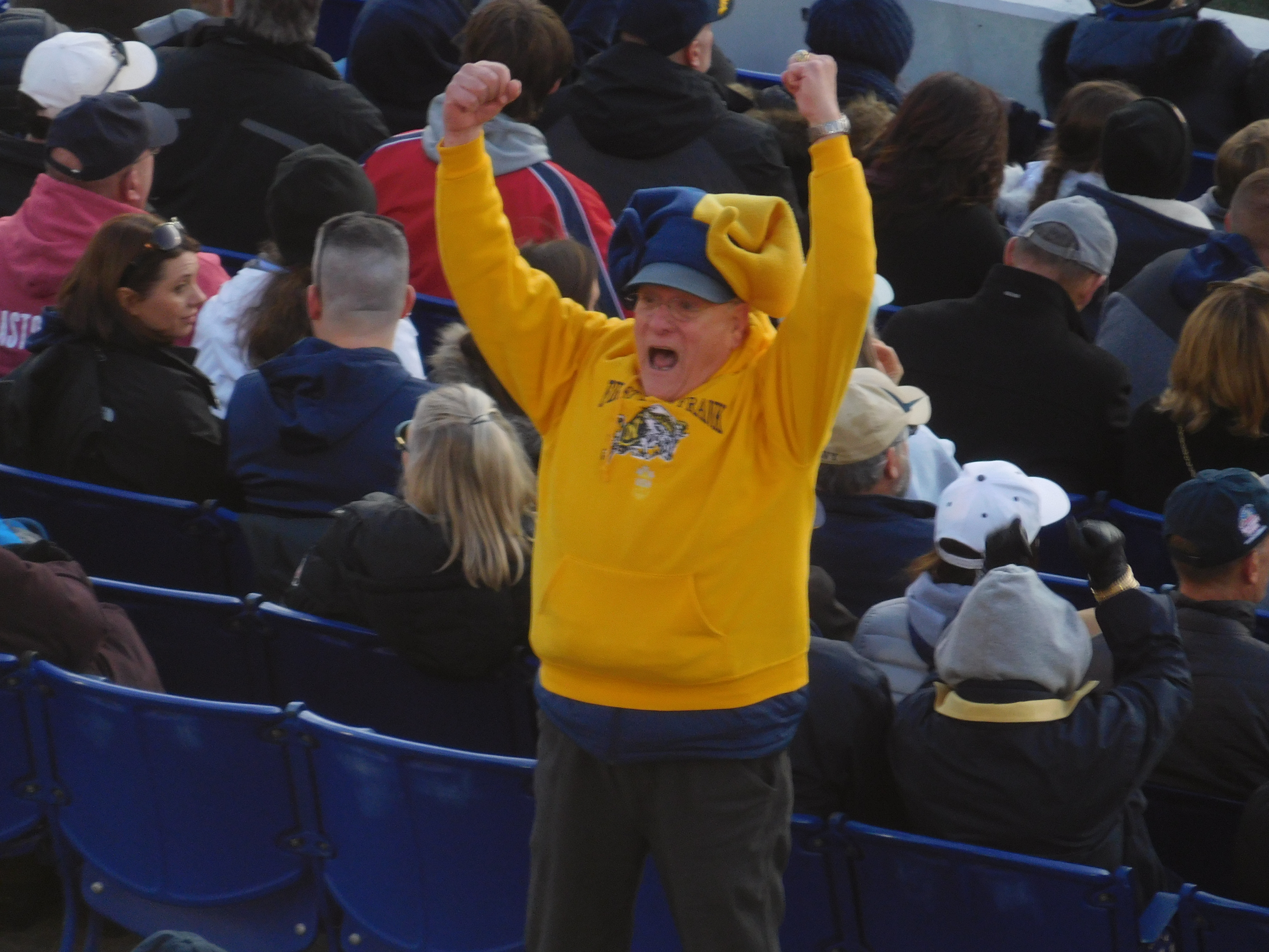As he does at every Navy game, except sans his No. 72 jersey at this game, “First Down Freddie” leads a cheer to celebrate another for the Mids! Will die-hards like this be forced to sit out the season if it’s played,