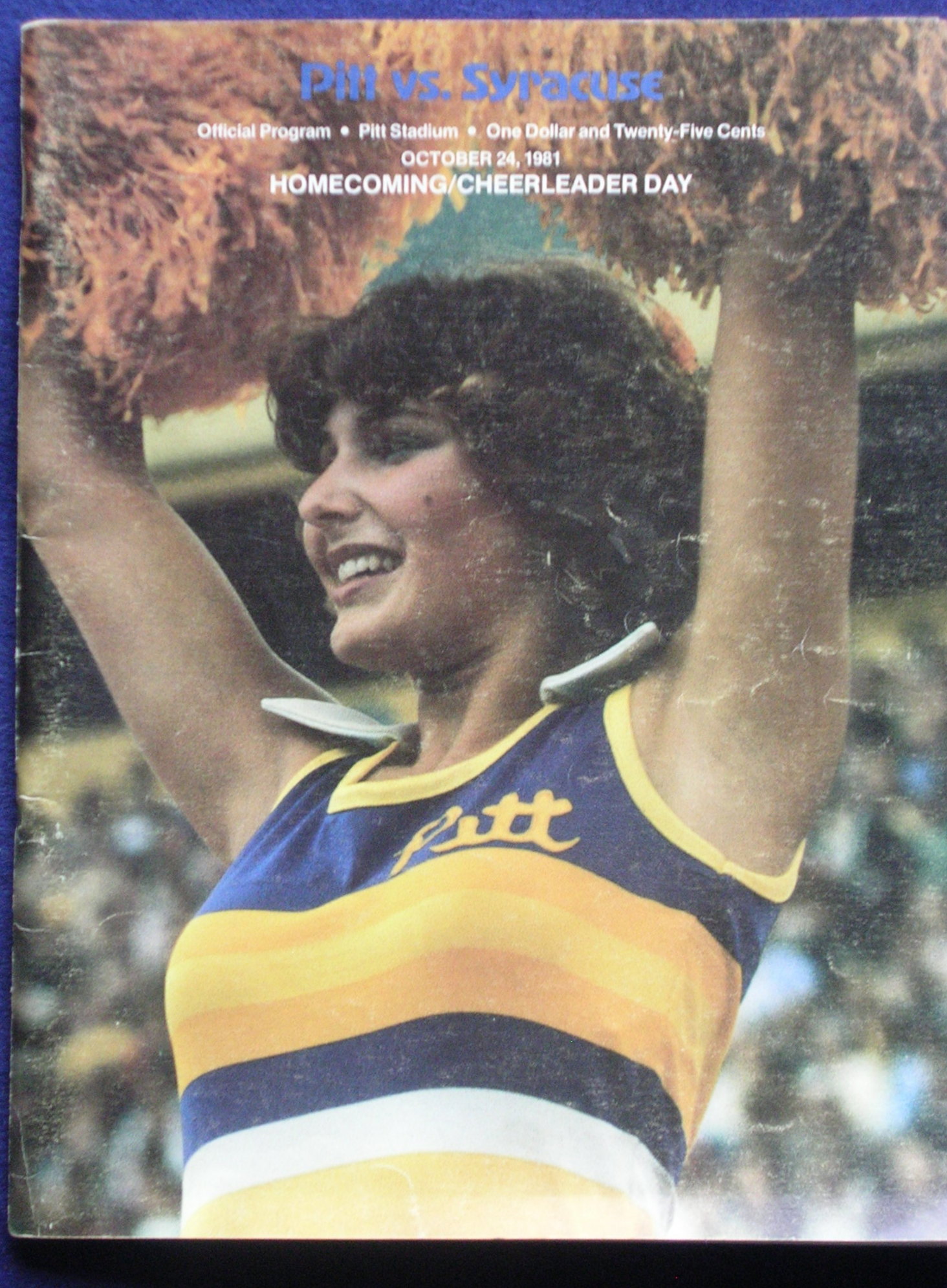 Even though she’s from Pitt, it’s the prettiest game cover we have. Pitt with Dan Marino beat Syracuse with Joe Morris at old Pitt Stadium.