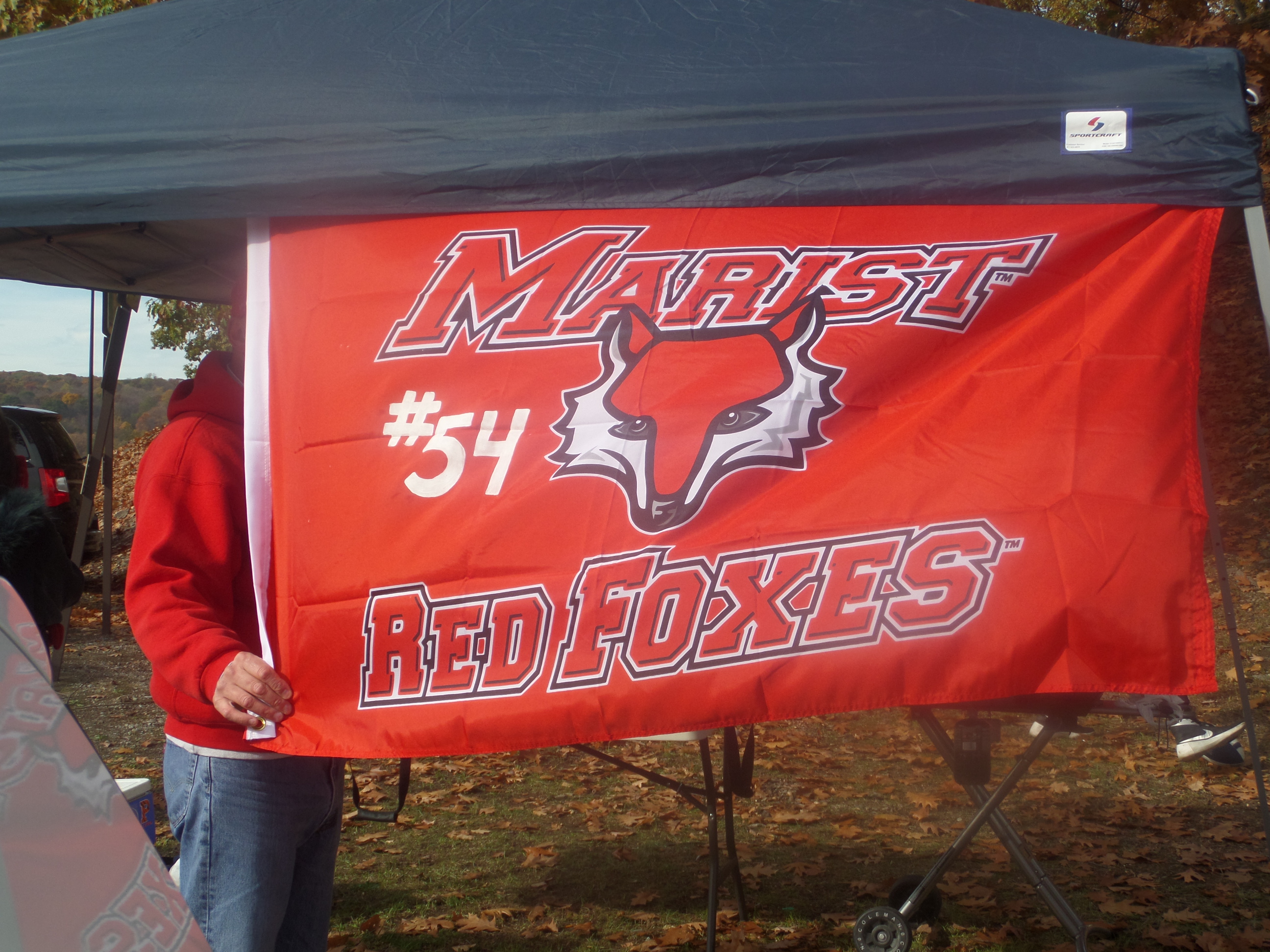 Don Braun proudly displays his Maris Flag with his son Jimmy’s hand-painted jersey number 54 on it.